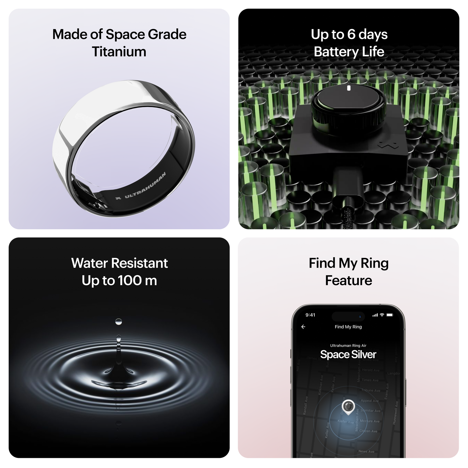 Forged from aerospace-grade titanium with a tungsten carbide coating, the Ring AIR is tough, sleek, and water-resistant up to 100m. At just 2.4–3.6 grams, it’s so light you’ll forget it’s there. With up to 6 days of battery life on a 2-hour charge, it’s ready to keep up with every ride, workout, or workday.